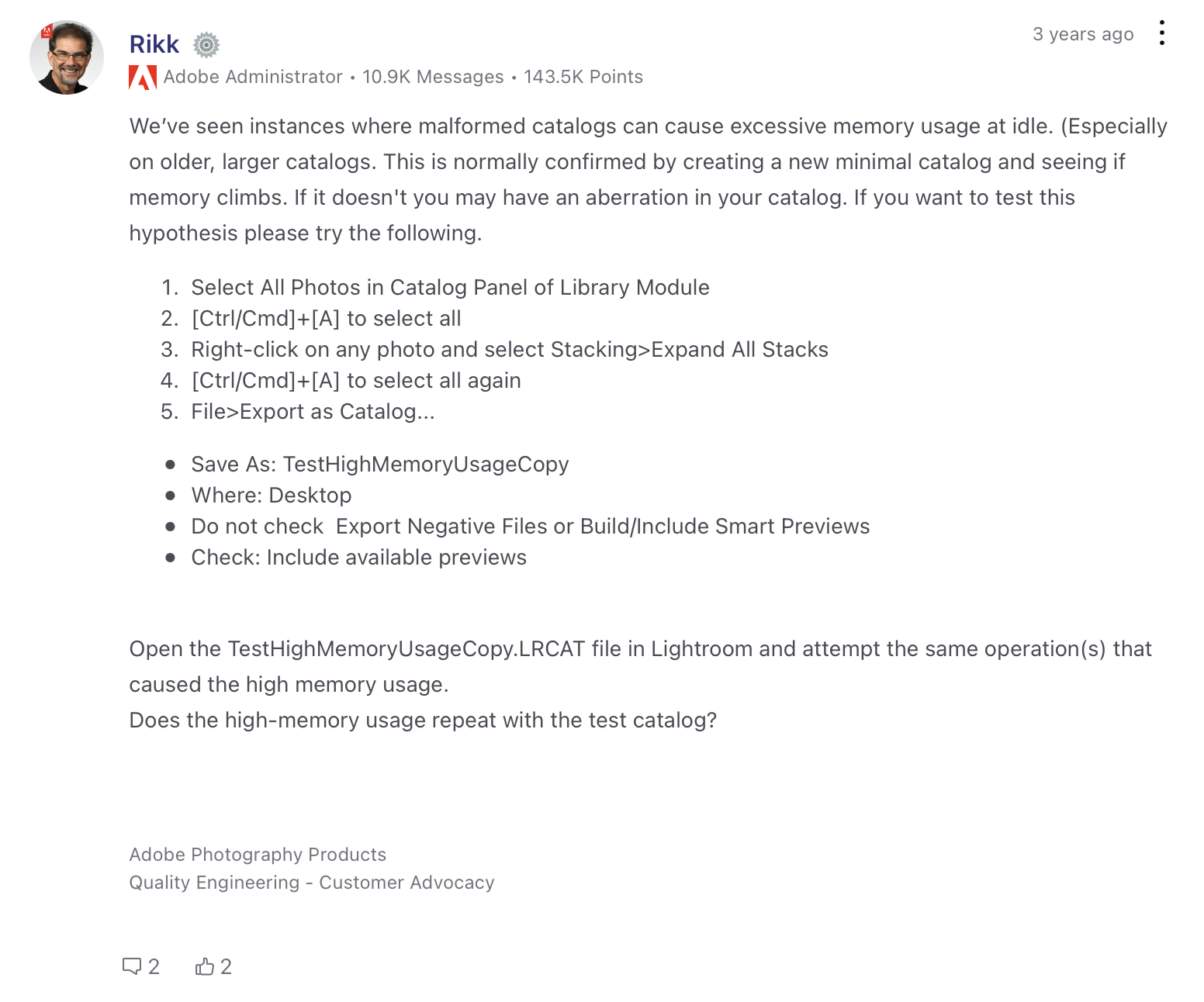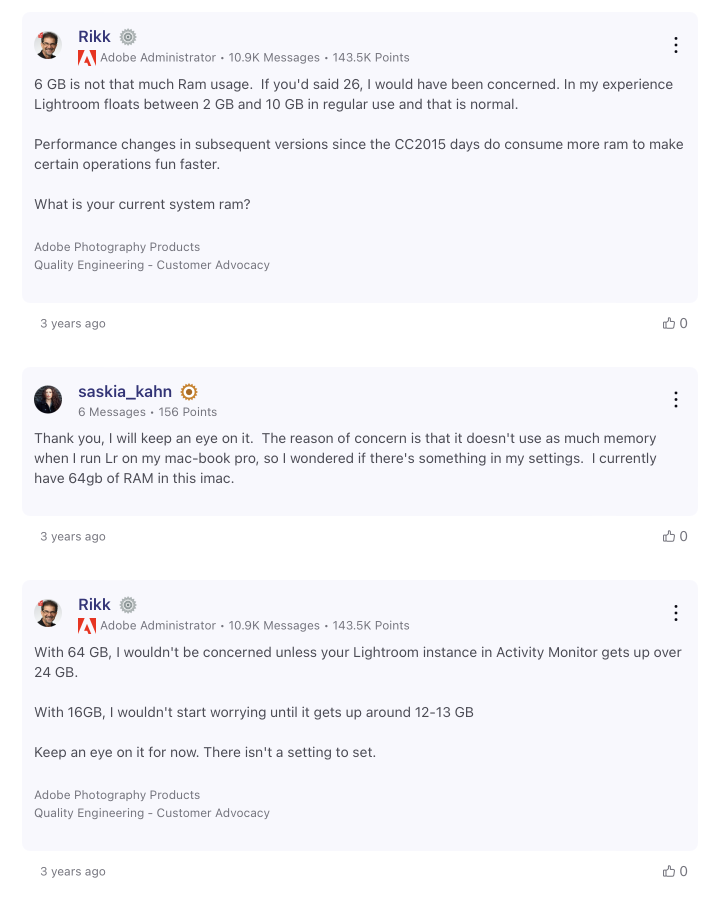It doesn’t matter what Mac you have. I‘ve seen fully spec’d out Mac Pro’s have high RAM usage with Lightroom. You could spend $699 or $50,000. Lightroom is not optimized.You mean they should change the thread to "I am not impressed with Adobe Lightroom on the Mac."