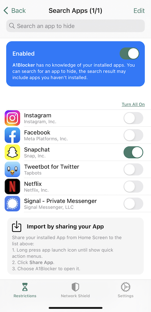 I would like to introduce our new app - A1Blocker - which can help you hide your apps to protect your privacy even further.