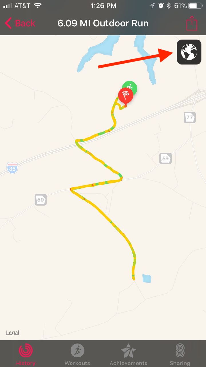 New in iOS11 is a choice of a satellite view of your outdoor Workout activity.