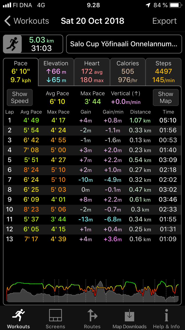 Split times can be calculated from the information in exported GPX files. If you upload a GPX file to a system like Strava or Garmin Connect then it will show the splits. Alternatively the WorkOutDoors watch app and iPhone app both show split information for dozens of different metrics.