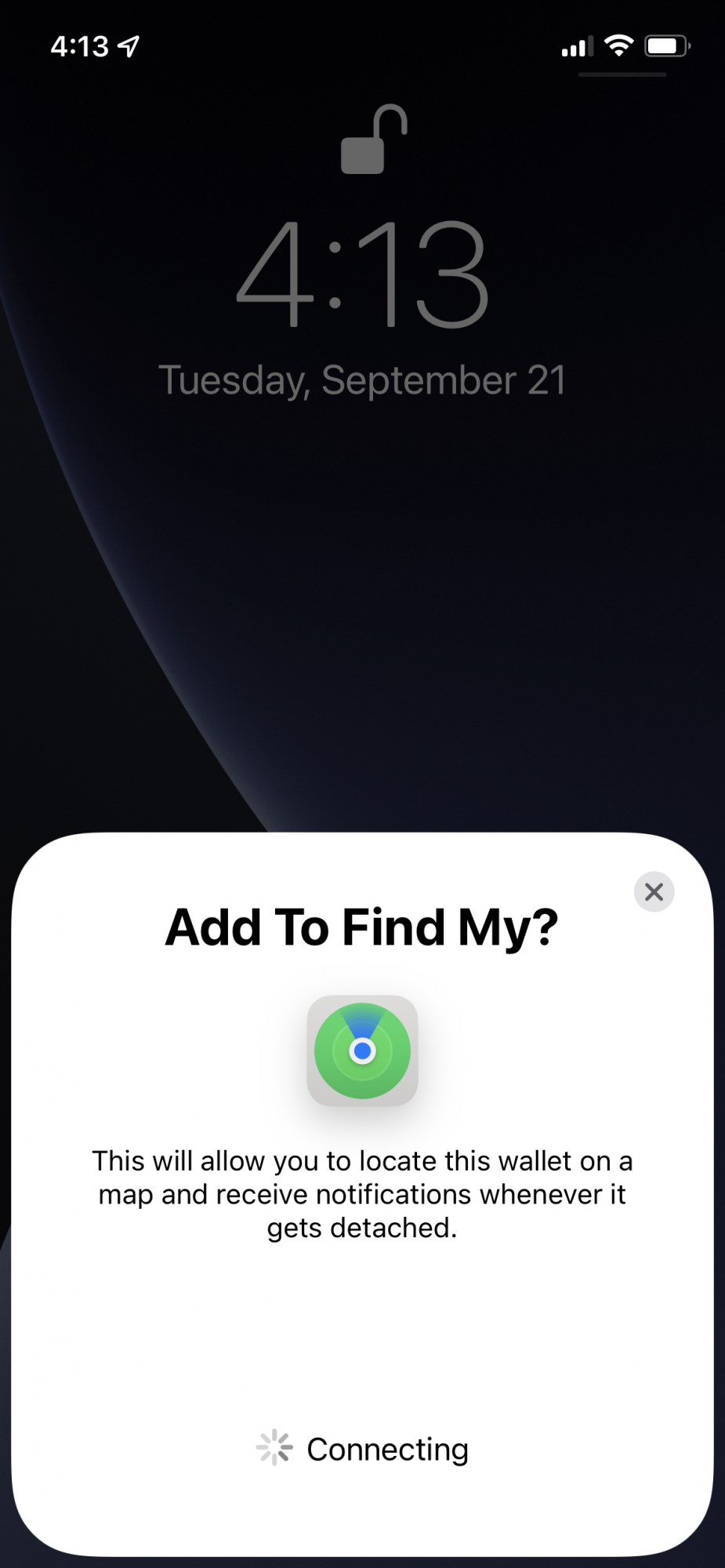My new wallet arrived today as well. Connected it to my iPhone 12 Pro with iOS 15 installed, and it led me through steps to include it in FindMy. As for notifications, the notification option will alert you if the wallet has been detached for more than 1 minute. There is also a phone number option so that when someone else puts your wallet on their phone, your phone number shows up.