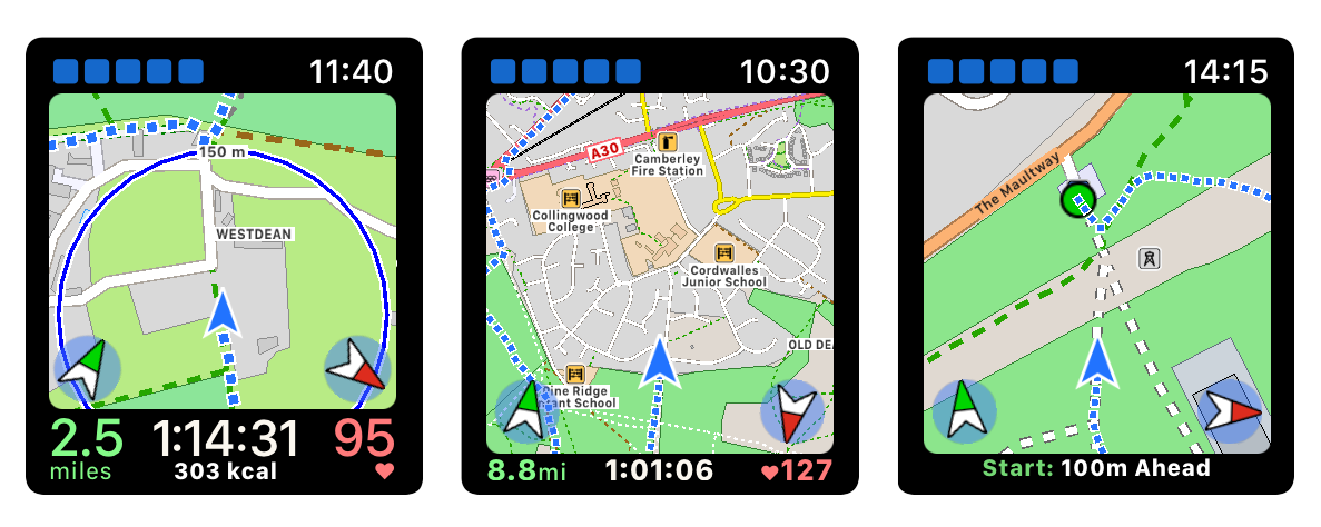 I have just released a new workout app for the Apple Watch which shows a fully functional vector map whilst you exercise. It is ideal for hiking, mountain biking, skiing, or any exercise where you need to navigate.