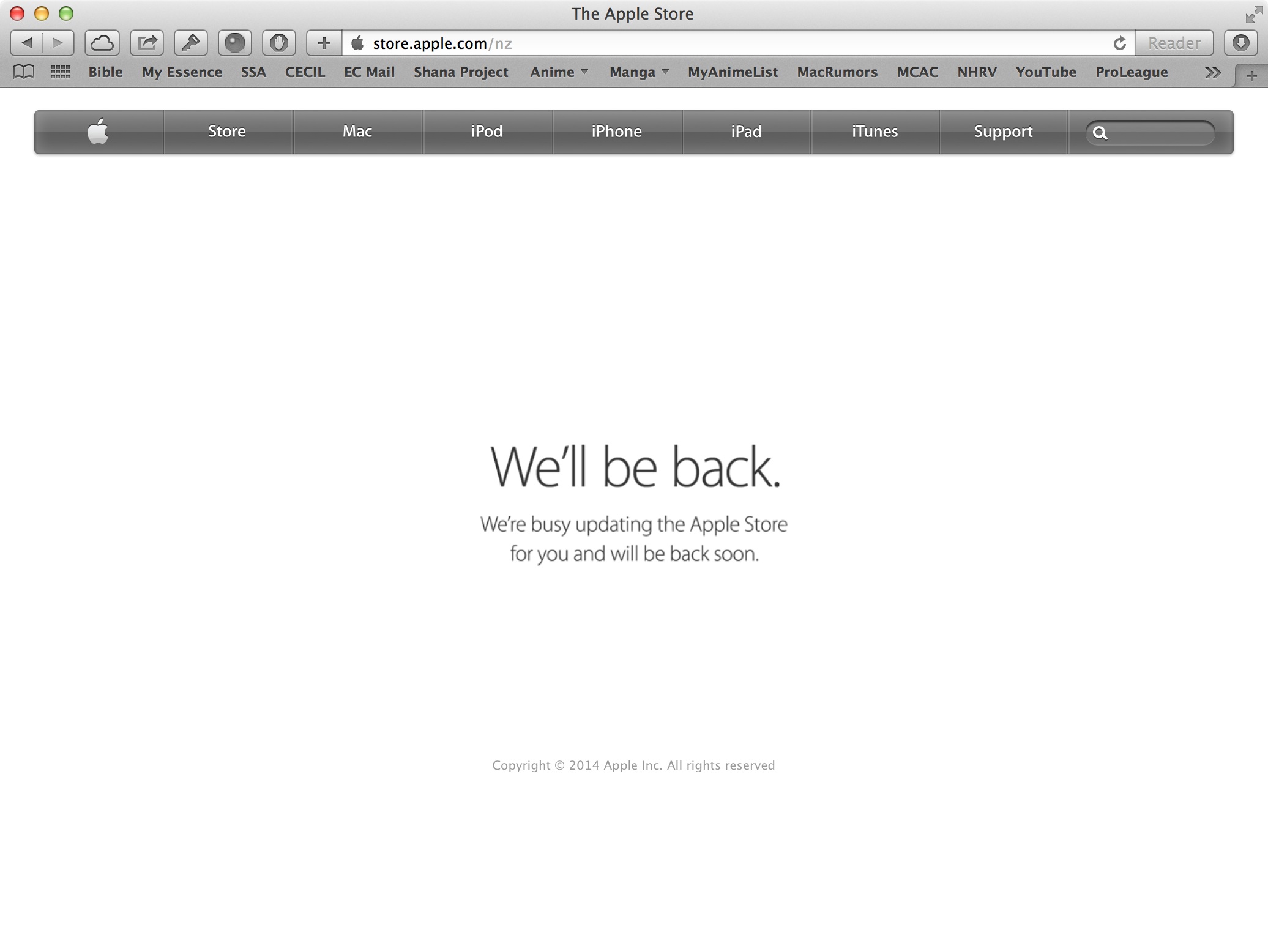 The Apple Online Store is down! Is everyone prepared? I'm hoping that the shipping times won't be too terrible.