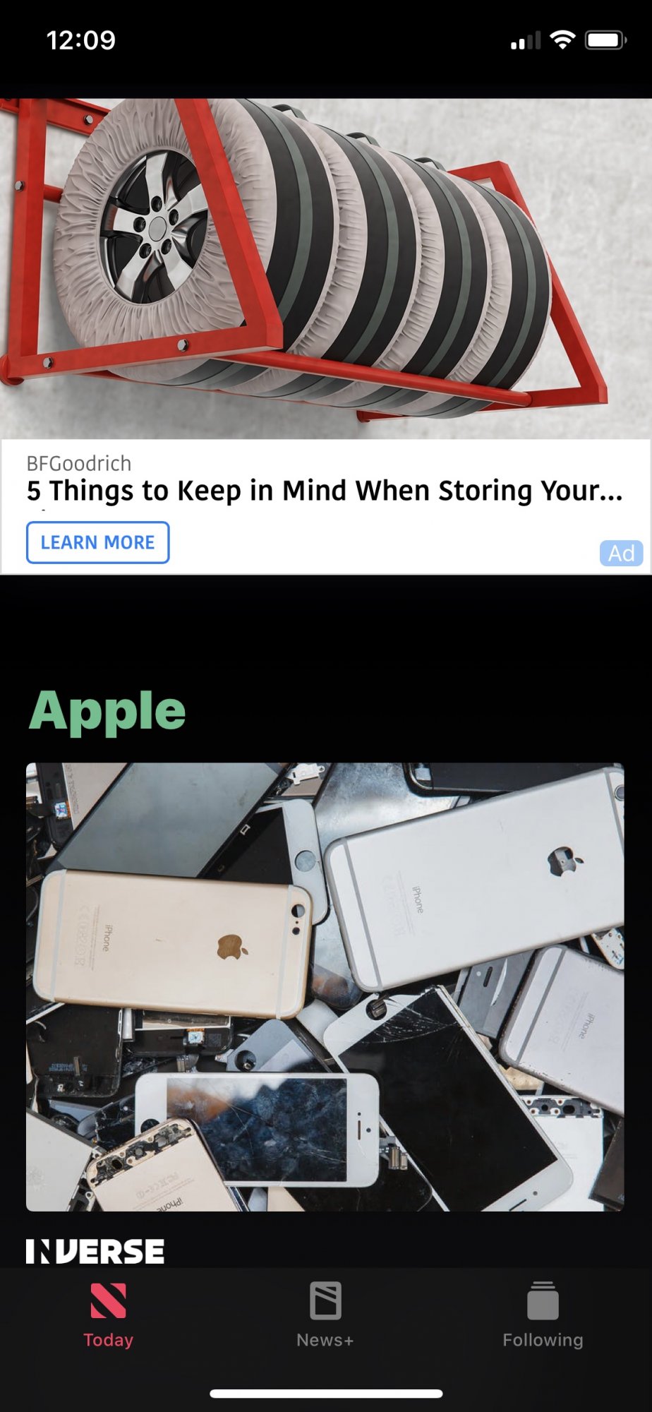 I don't ever recall seeing ads in Apple News App but in the last month or so I've noticed ads. And I don't mean ads in articles, those I expect, but rather in the main News App body, between headlines - see pic.