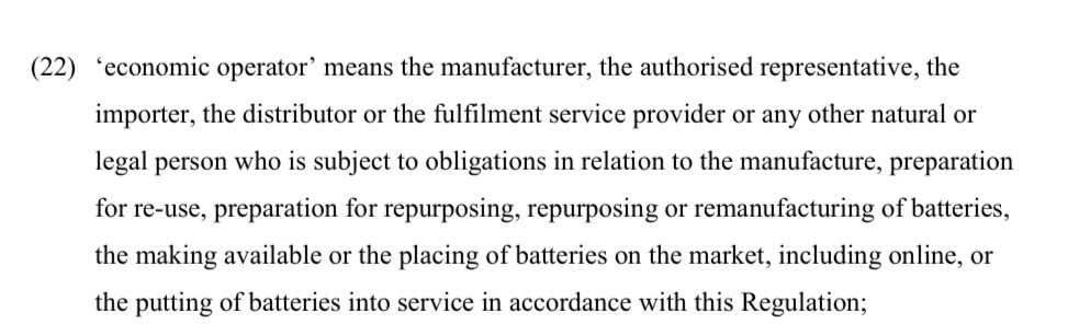 The return rule is interesting - in the text you provided you’d only need to put a return at a company store or from an authorized reseller, and only take back your own batteries, not 3rd party. I suspect most companies will simply contract with a 3rd party to handle recycling to keep things simple and not have to make consumers sort batteries by manufacturer.