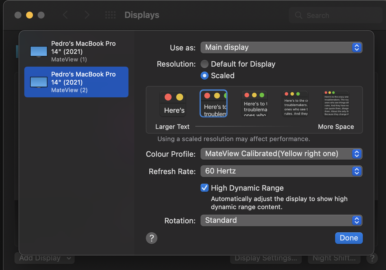 Currently the MateView is connected through USB-C as I don't have an adapter to connect through DisplayPort.