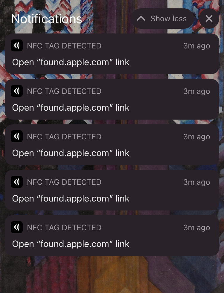 Thank you so much for your assistance. Sadly, I could not get a response from Apple on this issue. The potential for this crap to be abused should be concerning for all. My personal opinion is that I don’t believe this has anything to do with the authenticity and more to do with tracking. Should we expect these companies to exercise restraint when implementing microchips? How about the labels on our coats, shirts, jeans, and shoes? I think it’s all crap and Apple is enabling it. By the way, Ferragamo claims that you have to be holding the wallet in order for the microchip to be active, that is also crap. I had my phone next to the wallet resting on a cocktail table at a cigar bar. I saw the pop-ups appear one after the other. Enclosed is a snapshot from this evening. It wasn’t near my hand(s)… Thank you again for your assistance.There is your answer: Ferragamo products have an NFC chip in them.