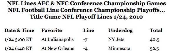Hopefully the Jets turn back into a pumpkin soon and that horrible Superbowl doesn't happen.Im calling Jets/Vikings in the Superbowl Colts didn't impress despite the win there were times were they score should have been higher but i do think the Colts/Jets will be amazing game
