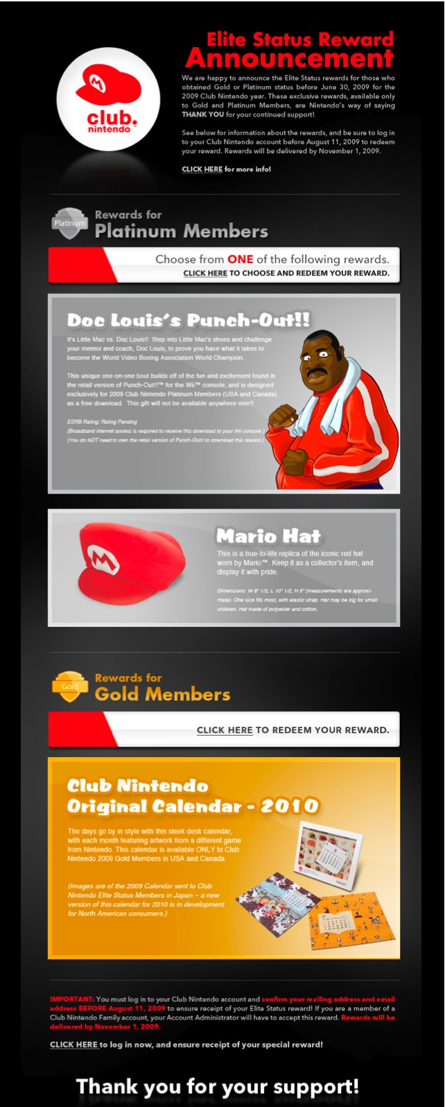 Nintendo (North America) announced today that all current platinum and gold level Club Nintendo members would receive the following choices for their yearly special reward.