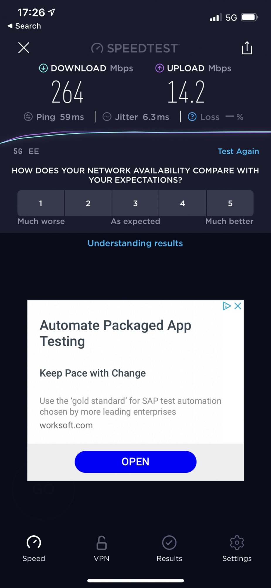 I will tell you that most of the 5G speeds I have seen over the last year have actually been less than that. There are a couple of pockets where I have seen speeds in the 100-200, but most have been less than what you are seeing. It is just going to take a while to build out.