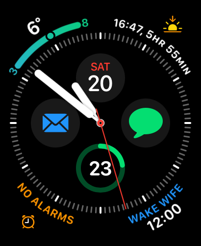 If I set an alarm on my iPhone, it also goes off on my AWU2. No problem. That's working as it should do. However, I have an alarm complication on one of my watch faces and it always says no alarms! Even if I set one on my iPhone to go off, say, in an hour or so, as above, it sounds on both iPhone and watch, but before the alarm goes off, my AWU2 will say no alarms!