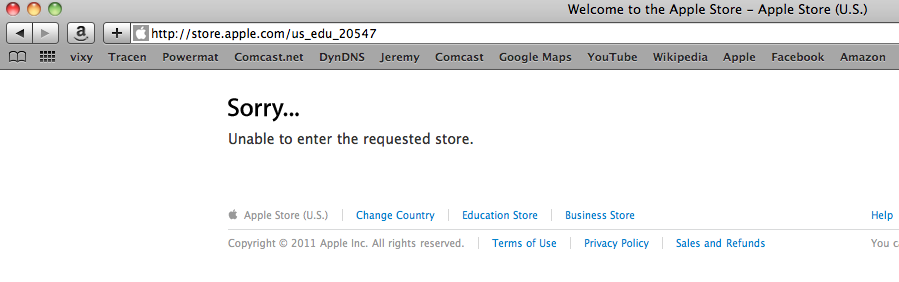 On my computer, it won't work. Have tried different web browsers and everything. It works on the Dell home computer. Kinda ticks me off. This is a photo of what I get when I try to go to the Education Store.