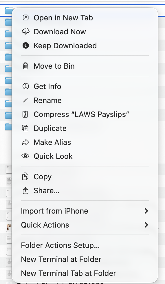 The screen grab on the left is from a YouTube video, the one on the right is from my laptop. Any ideas? I don't think it is because the folder I was trying it on was in the cloud as I created a new folder and it did not work with that one either?