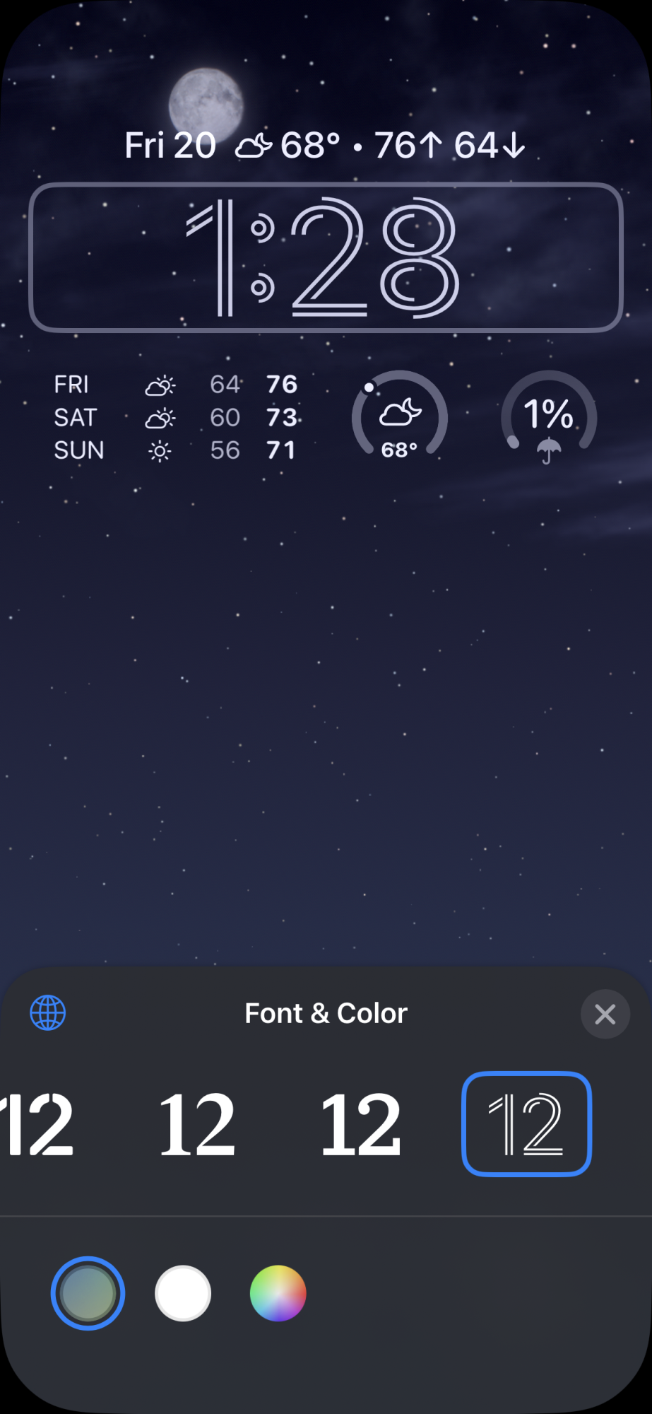 I've seen several mentions of the rainbow clock option on the iOS 18 Lock Screen, but mostly (perhaps only) in reviews from people who were running the beta ahead of release. On my 15 Pro, I do not have the option - the only color options are the grayish one that (IIRC) adjusts to the Lock Screen color, white, and a color wheel picker that lets you create custom colors. All the screenshots I'm seeing have many different colors under the size slider, but I just have those three, with all the font options. Is this something that got pulled from the release version, or am I missing something?