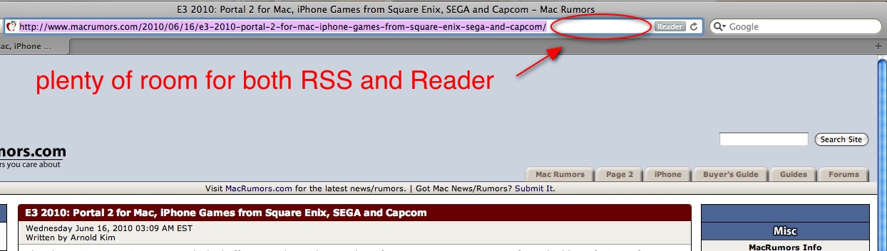 I'm confused. What is that proof of? The address bar with any Reader or RSS button doesn't even show, so how does that help?
