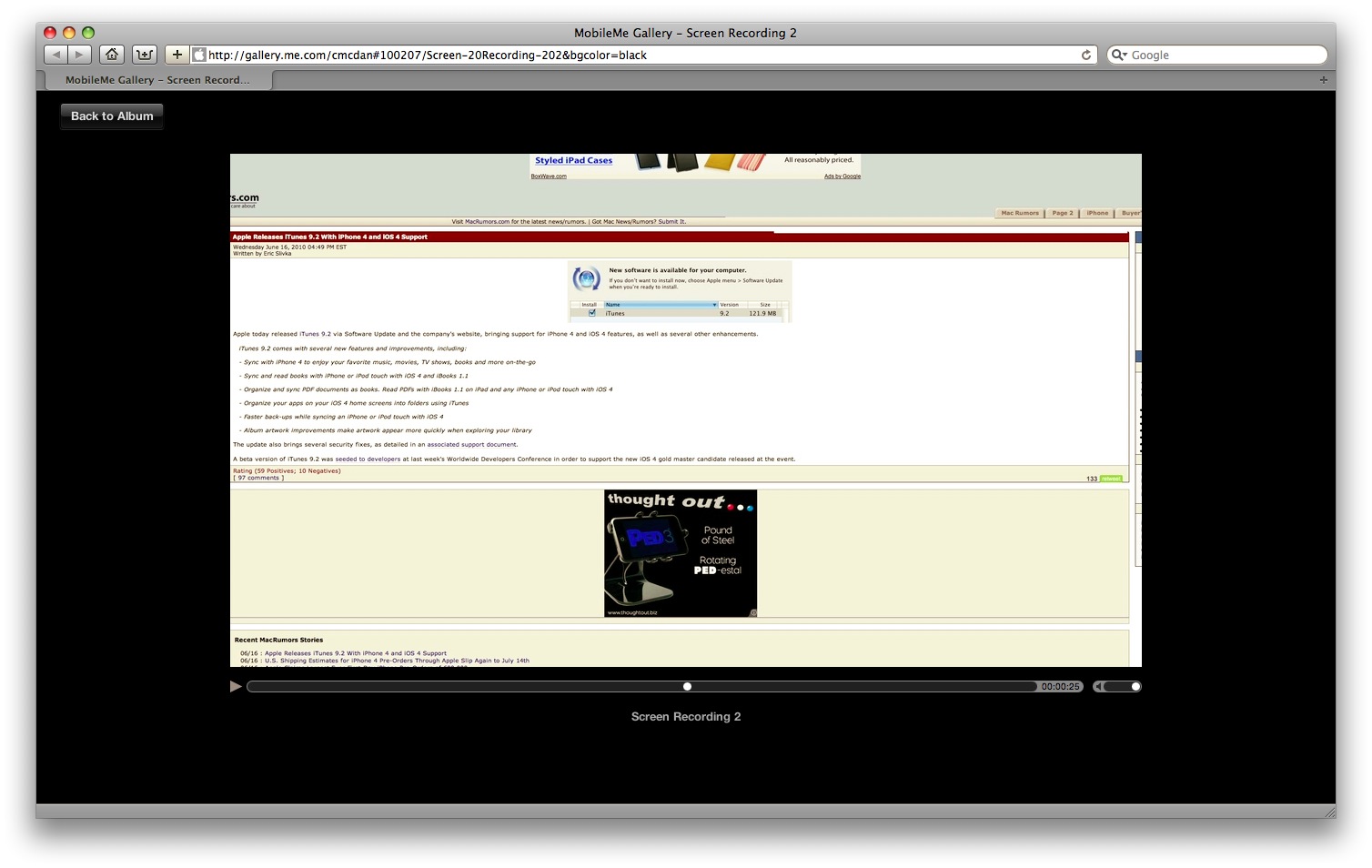 I'm on a 15" MBP, but there's plenty of black space around the video. Very strange the way it appears. It's not a big deal.... I don't need to see it. It just didn't readily show the address bar, so perhaps not the best method of screen recording, especially for visibility on a variety of screens.