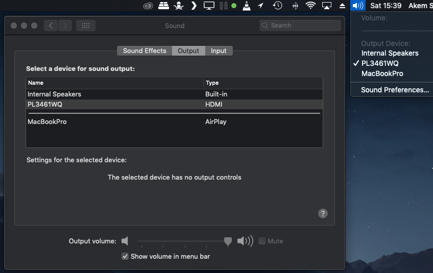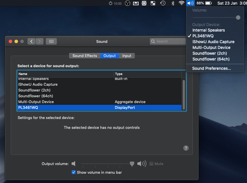 Mac Book Pro - Display Port - Option to Select Monitor Speakers