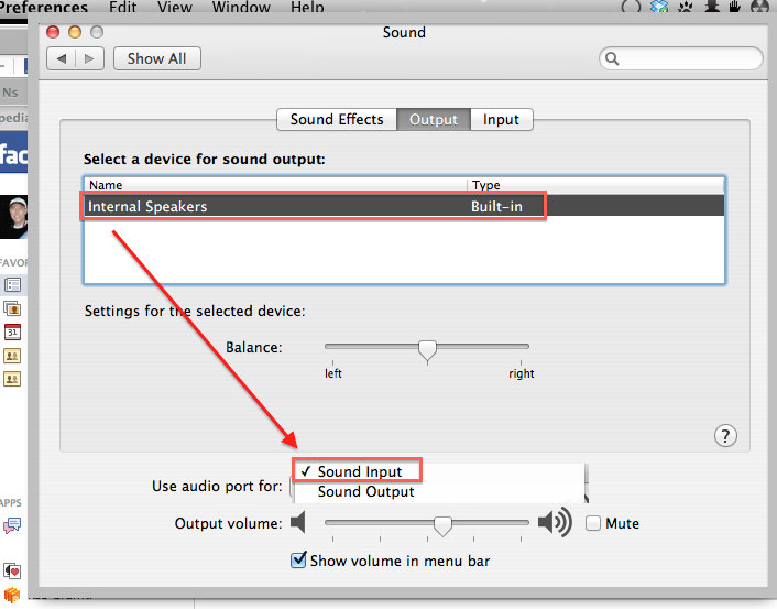 Step 2. Change System Preferences -> Sound -> Change Internal Speakers to an Input!