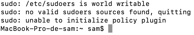 Hello, every time i try a sudo command in Terminal on Mac OS Mojave, i get :