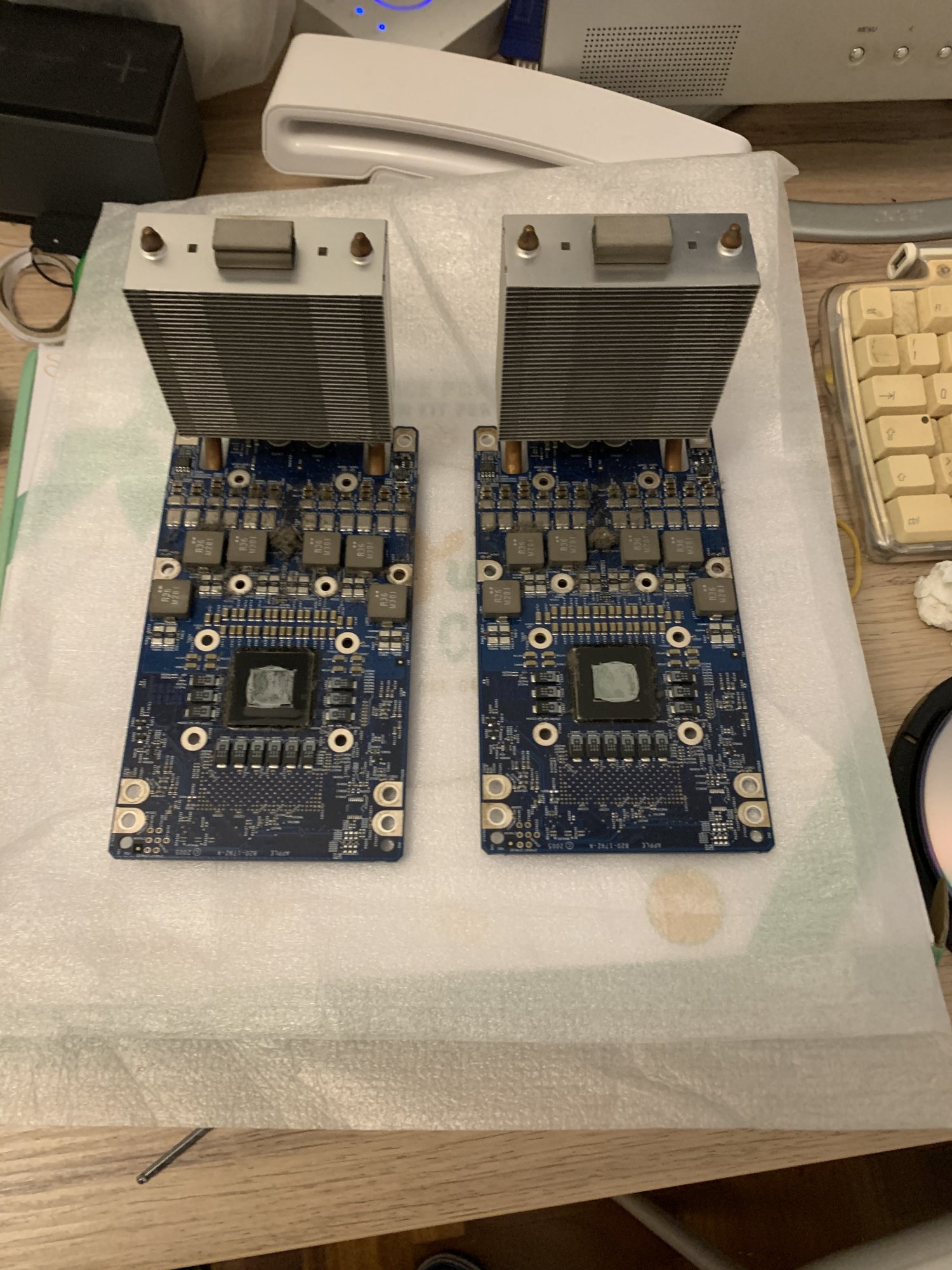 Hi, I own a PowerMac G5 Quad. It is very very noisy! I tried to execute the ASD calibration but nothing has changed. I tried to unplug all the fans to understand the cause of the noise. So the noise came from the power supply or the LCS system. Remove the power supply from the case is very difficult, so for now, I'm investigating the LCS system. I have the Dolphy LCS with two pumps. It is possible that the LCS system has some problem and the noise came from it? Can you suggest me some methods to understand if there are few liquids inside the system? I read some threads about the Air conversion from the 2.0 dual heatsink, what you think about it? Heatsinks are really enough for the G5 Quad?