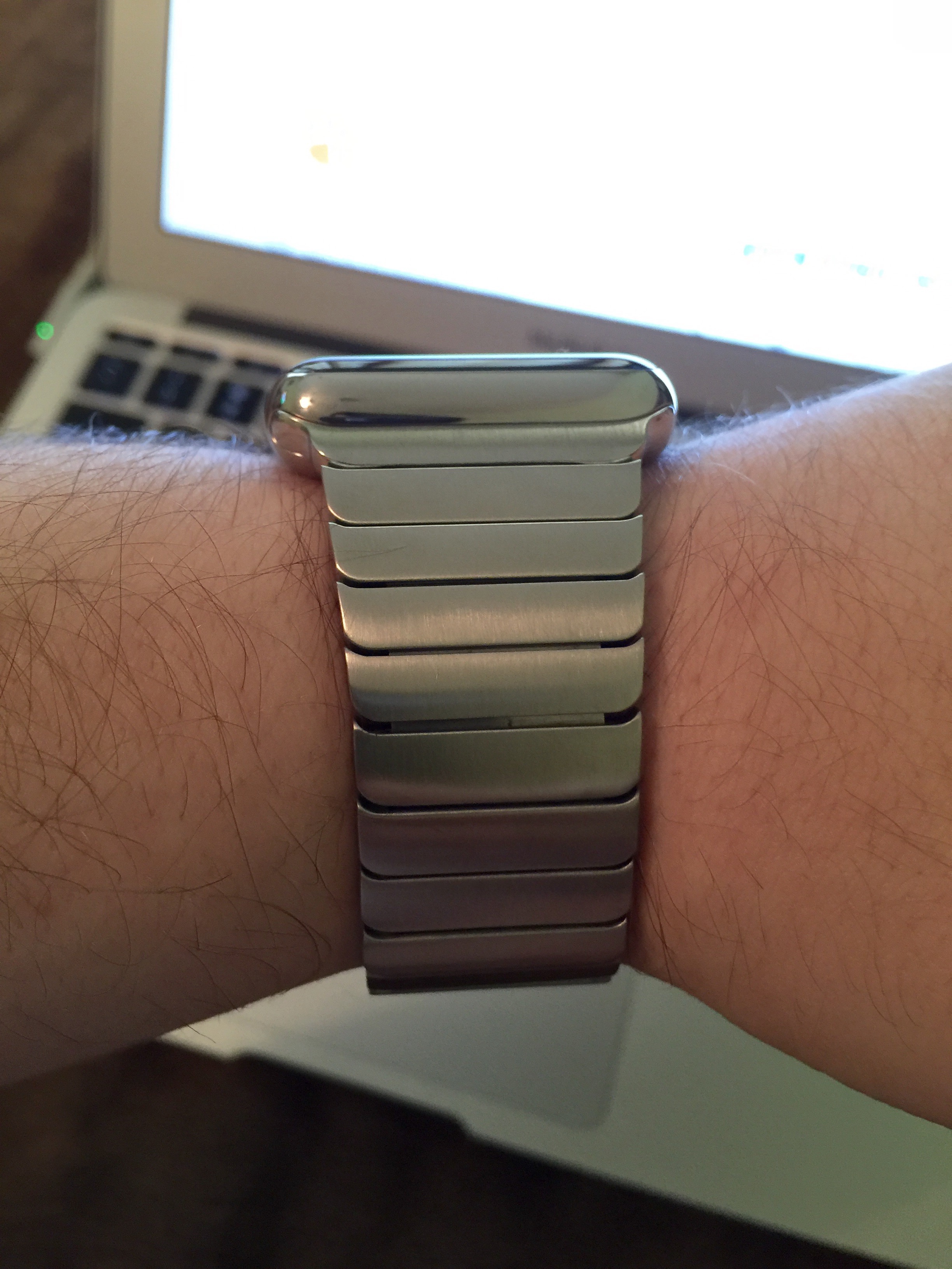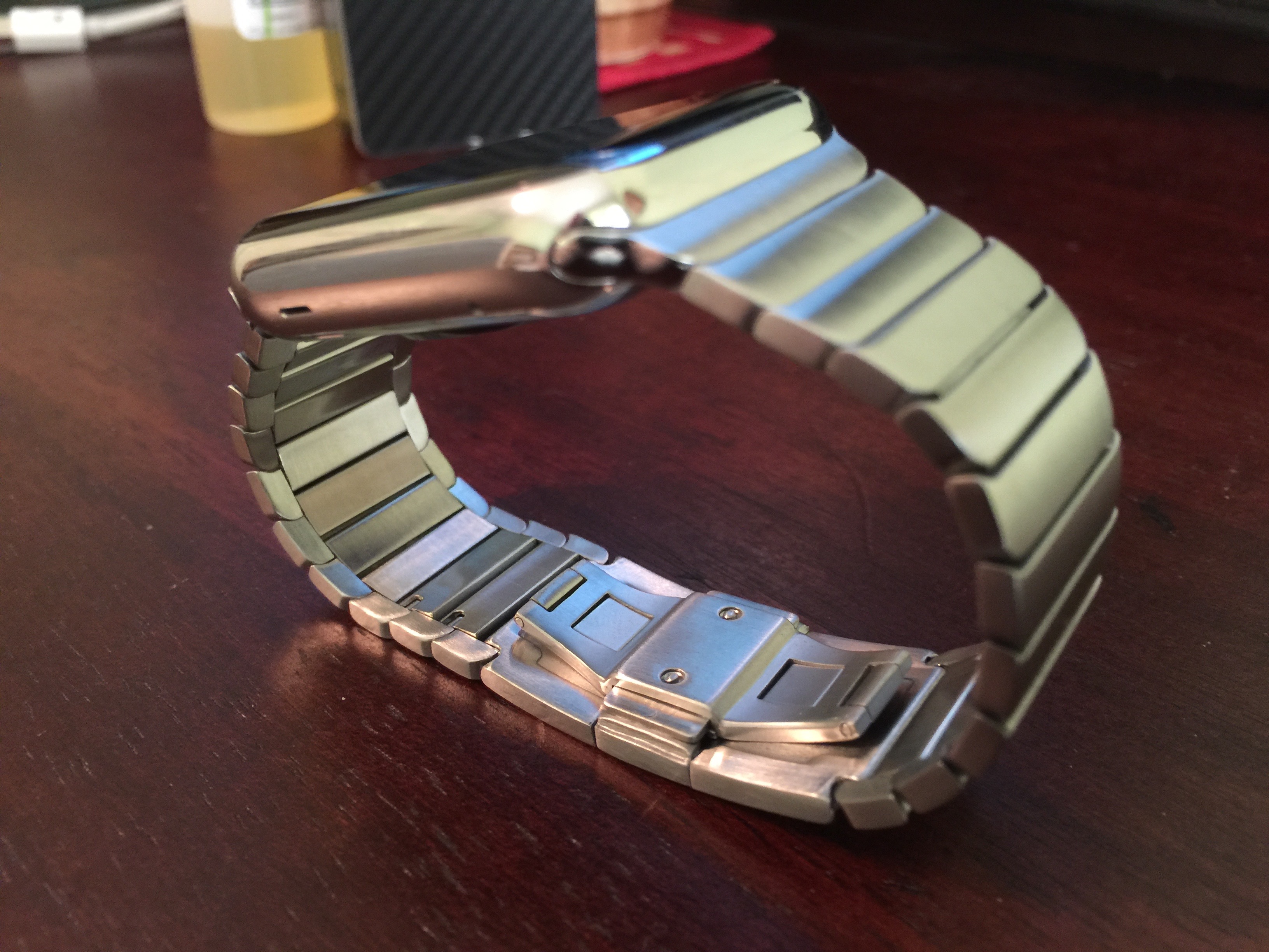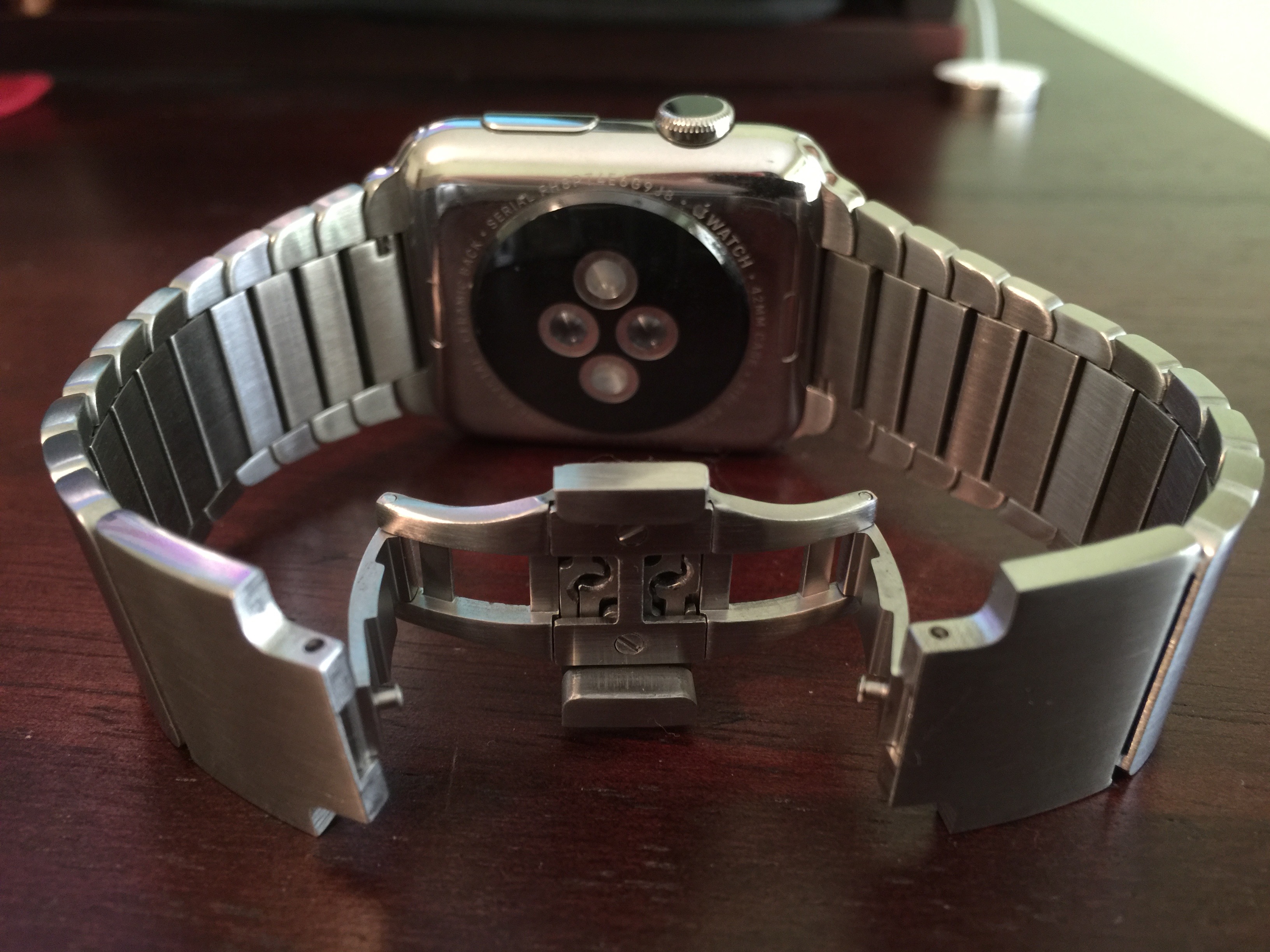Ok so my Freedomoclock link bracelet ended up coming today. As a previous owner of the official Apple link bracelet I feel like I should give my input. The clone has much more weight than the original, which is a HUGE plus in my book. The fit and finish isn't as good as the Apple link. The clasp buttons aren't as flush and there are gaps between the links as they bend. Comfort wise the bands are very similar, they are both very comfortable. Resizing is pretty easy as well. The official Apple product is of course nicer, but the price to quality ratio leans heavily towards the clone in my humble opinion.