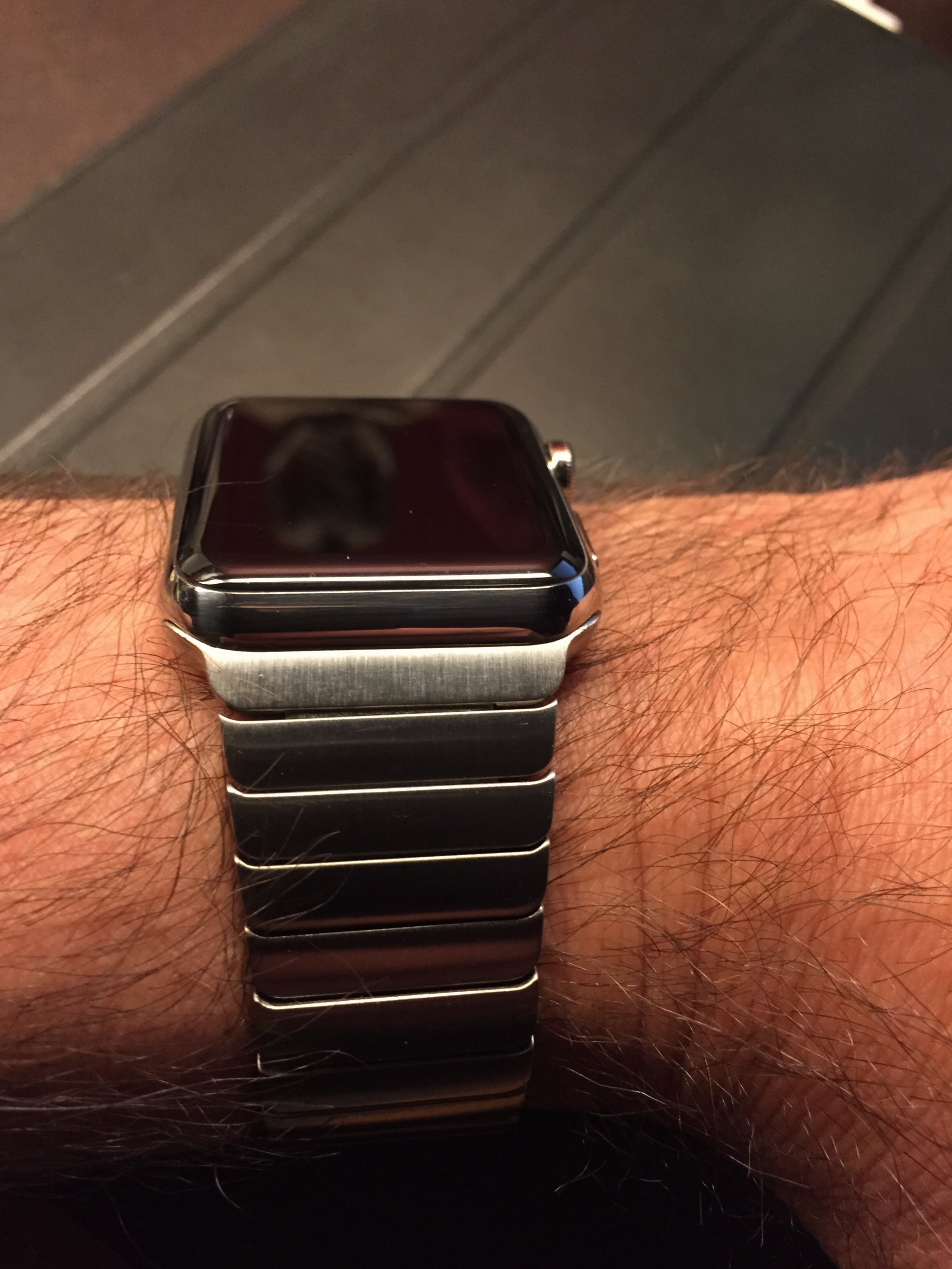 Unfortunately I'm going to return it. The problem is that it's too long. Utica's shortest is 9 links between the clasp and end link. Apple's is 7 links. For my 6.5" wrists, in the summer, I'm wearing 8 and 9 links on each side of he clasp. Utica's only provides 9 & 9 link on each side, so it's 1-2 links too long for me (and will get worse in the winter when my wrist shrinks by about 1 link). Also, Utica's links are longer--compare the left side of the bracelets below (both have 9 links). So realistically, I'd probably need 8/8 or 8/7 links with Utica's bracelet.