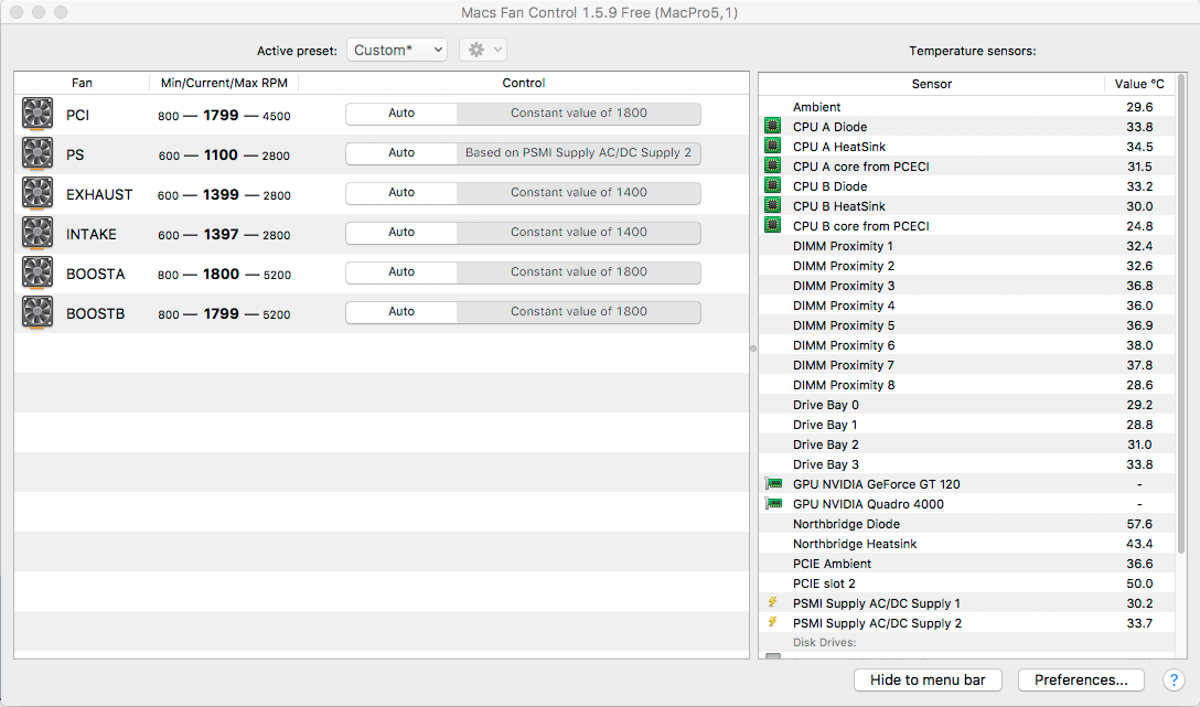 Meanwhile Mac Fan Pro is thinking: Oh, the Northbridge is pretty cool, Booster-A can stay at 799 and Intake at 1200. Ok, the Exhaust speed up, but this is not good like Booster-A and Exhaust together and i would say it is much louder.