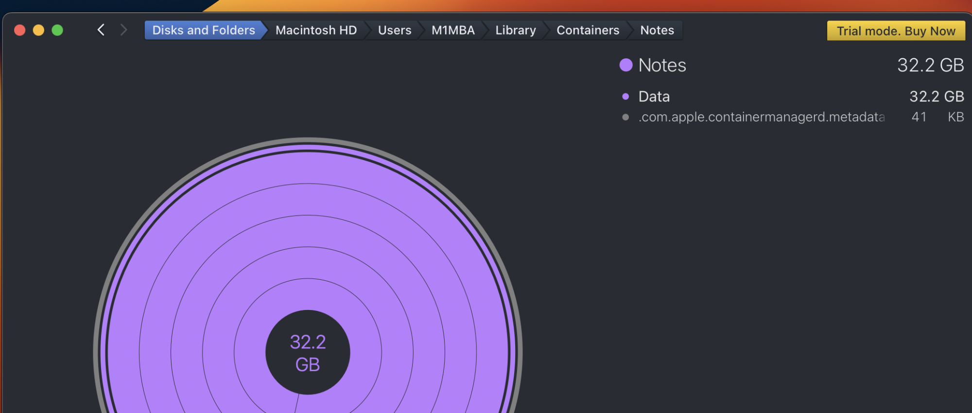 Just noticed today that my notes is taking up a significant amount of space.. "on my mac" notes folder has been disabled for a few years so I'm not sure whats going on here.. All of my other devices have the same icloud notes on them and are showing under 100mb internal storage on them. Since I cant delete the notes app on mac, what other solution do I have? I checked the system library folder for notes and there is nothing significant in it..
