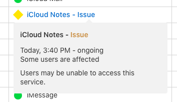 T TigerKR macrumors newbie Original poster Nov 6, 2004 23 8 Oct 19, 2021 #1 Notes wasn't synching on macOS Big Sur, so I tried logging into iCloud.com. I received an error message saying that notes was down for the next hour for maintenance.