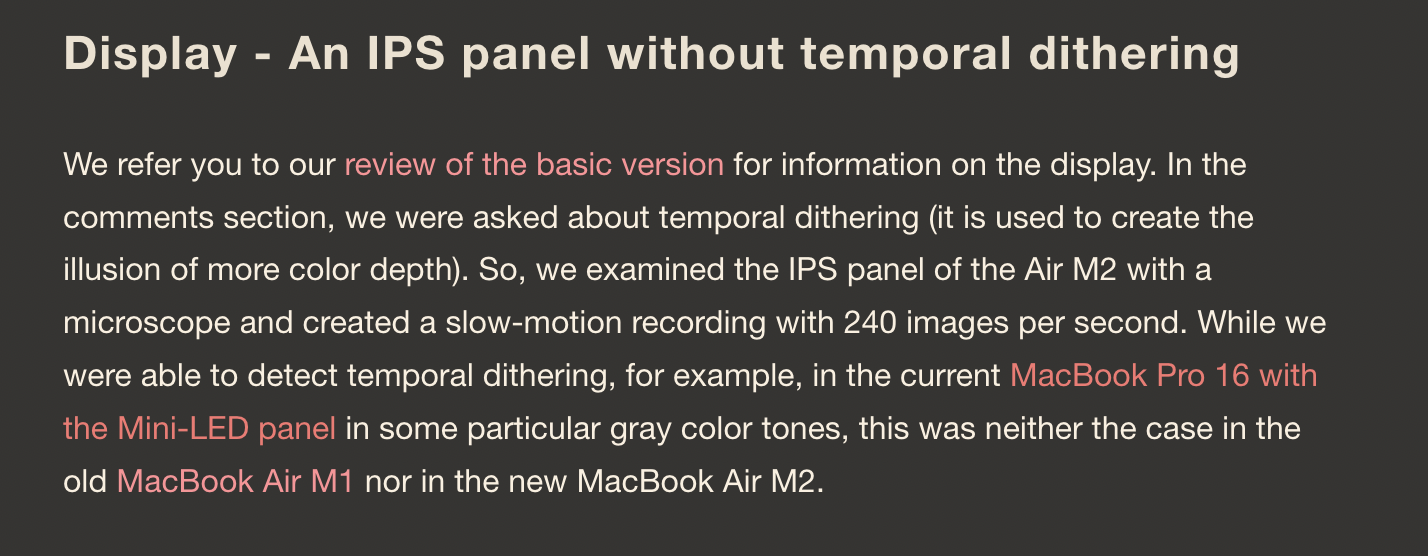 It could be also that during supply shortages, apple is unable to maintain quality of their parts, so it produces one batch for one region or segment, and another for other. This was common practice in some product areas where some corporates caught up selling lower grade produces to some regions for the same price. But, with apple, it is something odd, because you have a lot of influencers, who are just promoting, but not giving enough scrutiny. Based on picture in this test, it is obvious that particular screen is flickering beast. Regarding those older macbooks, I can confirm that about that year, those laptops in 13 inch size where superb and I had one from work. I remember using it, and it was absolutely brilliant and easy on the eyes in comparison to first 15 inch MacBook with touchpad I had from 2016, which was very bad on the eyes. Generally, considering that there is component shortages after Covid, every unit needs to be individually tested, there is no way around it, unless its an older pre pandemic model, which may have better data in these testing sites.