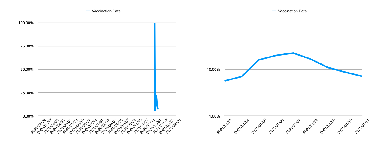 So the advantage of selecting an entire column when creating a graph in Numbers is that when you add more rows, the data is updated automatically. I have a new column that has no data until a couple weeks ago, and I want it to just update without leaving a tonne of empty space at the left side of the graph, but I also don't want to have to update the chart data every single time I add a new entry—which is every day.