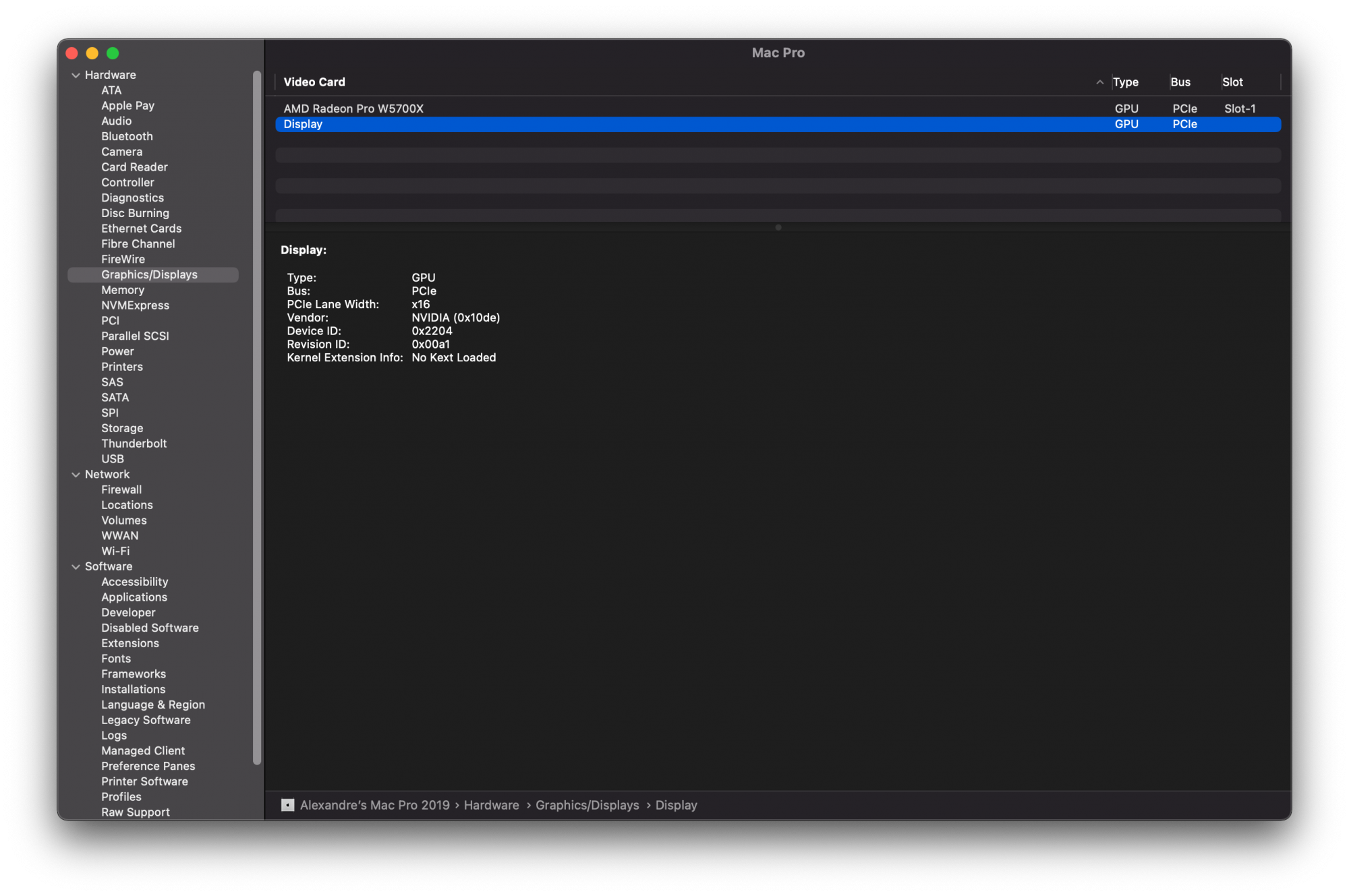 This gave me the idea of seeing what driver the RTX is using, since it's being recognized by macOS.