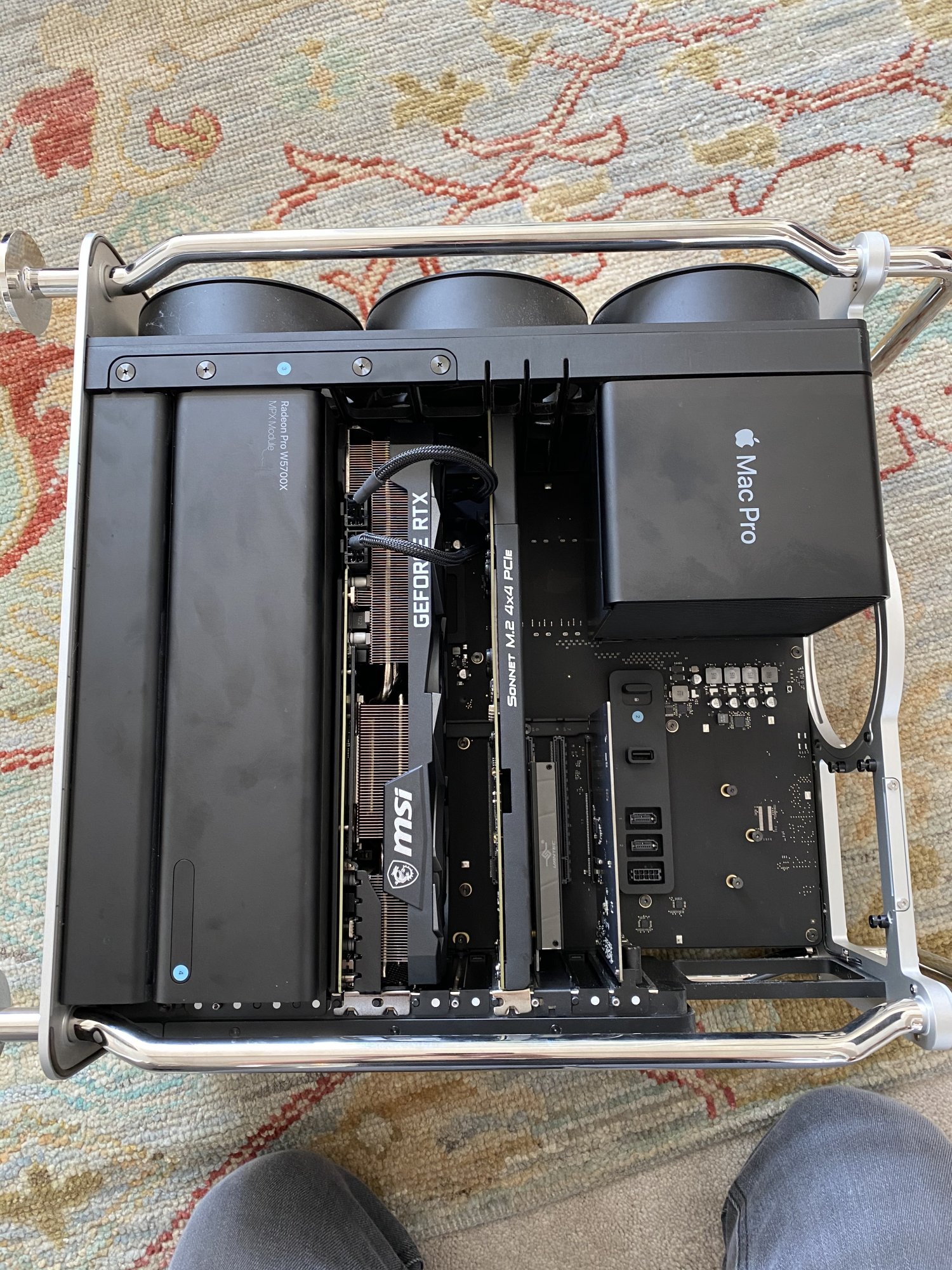 The 2x8 to 12 pin adapter is included with every Nvidia RTX 3000 series Founder edition.Anyone know what this 12 pin adapter looks like? If it’s meant to plug in to the PSU, it won’t work, because the Mac Pro board already needs an adapter. If it’s an adapter at the cable, then we are good.