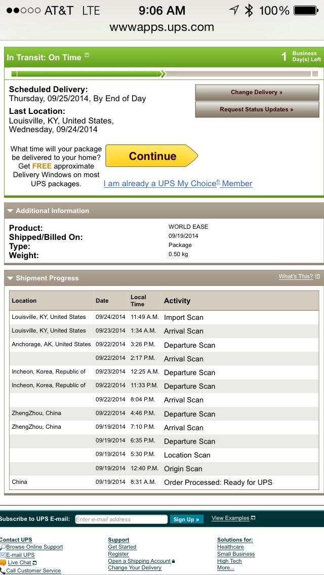 Louisville, KY, United States 09/23/2014 1:34 A.M. Arrival Scan