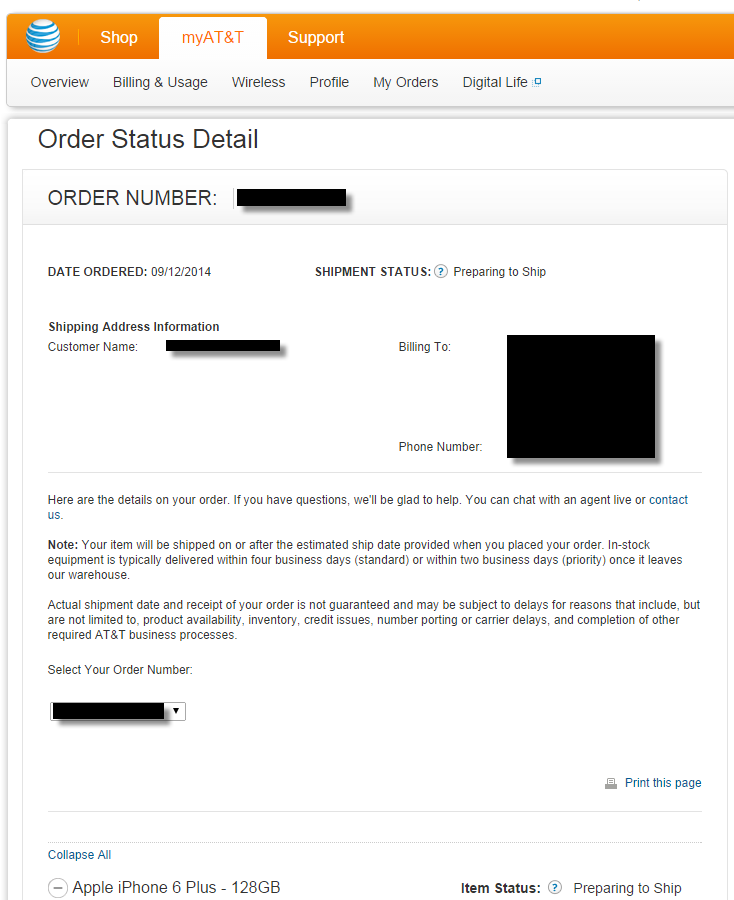On a gut feeling I decided to login to my AT&T account and click My Orders. LOW AND BEHOLD! There is an order there too! I originally placed the order on the 12th with AT&T and then cancelled when they gave me a Oct 30- Nov4 delivery date the morning of the 13th. I had a Reservation with Apple from also trying to order there at 3am est on the 12th so I used that. I got a cancellation email from AT&T, but when I just logged into my AT&T account I see this.