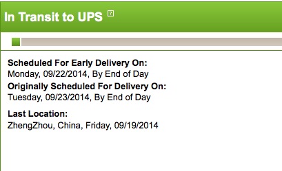 My 64GB Space Grey iPhone 6 Plus is in ZhengZhou, China, and says it'll arrive on Thursday, 9/25.