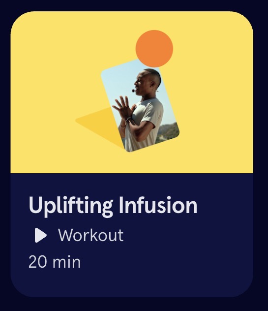 😂 that name of that yoga workout on headspace is quite interesting. They name their energetic flows differently while fitness+ names their workouts mainly by trainer.Not sure what an uplifting infusion is. Sounds like a health drink!