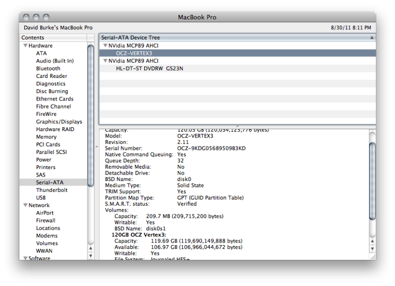 Right: Mid 2010 13" 2.4GHz, 4GB 1067 RAM, OCZ Vertex 3 120GB