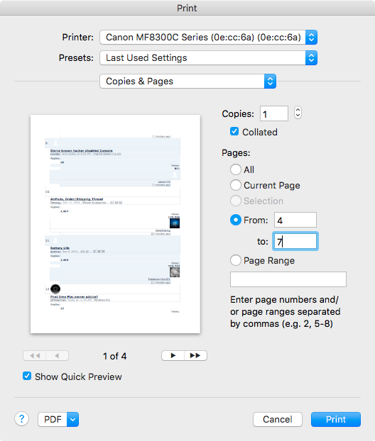 my wife just got Office for Mac 2016 (came from Windows with Office 2007(? not sure about the version)). Now she can't print a range of pages - it'll always print the whole document.
