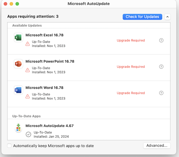 2. Install MS AutoUpdate 4.6 you downloaded