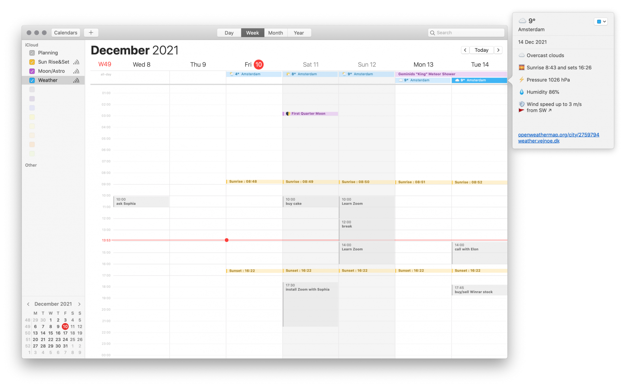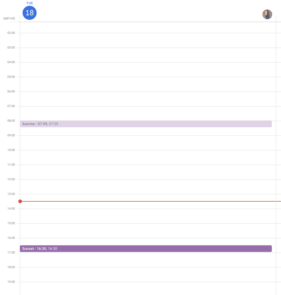 For many yeas now, I've been using a calendar from webcal.fi that I subscribe to & then sync up with my calendar app. It adds sunrise & sunset times to my daily calendar. That service is shutting down & they've started up a new one, but it's a subscription. It's not terribly expensive, but still, I'm not sure that seeing those times is worth paying for (to me).