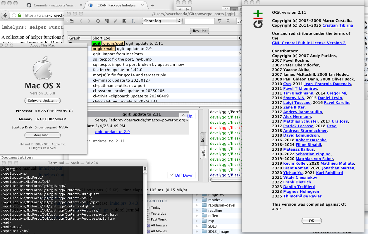 Uh, I apologize, I guess you got me completely wrong. I didn't mean to imply that you should "work faster" (or so) on it. It just seems you are pretty knowledgeable in all things PPC; so I assumed that you'd know if someone got it runing.Well, this is a hobby thing done in a free time (financing I had via donate from GitHub was about 100 bucks for the past year, so I cannot make it my job, sorry). Qt5 is painful and needs a lot of work. I just don’t get a free month to work on it full-time. And if I concentrate on Qt5 until it is fixed, then everything else will be broken by then LOL. (It took a few weeks for upstream MacPorts to break quite a number of important ports since I stopped submitting fixes there. So it needs effort even to maintain a given level of functionality – if nothing is done for a month, a lot of stuff will be broken.)