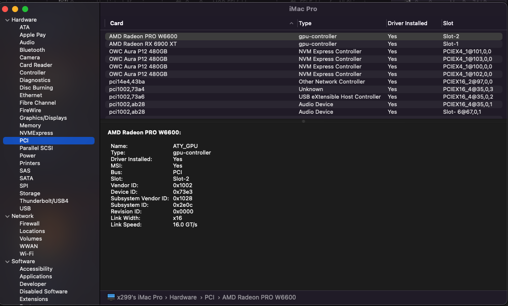 Device ID: 0x73a5It could be this one. I'm quite sure my MPX is slot 1+2 and then the 69502 XT is just above that in slot 3