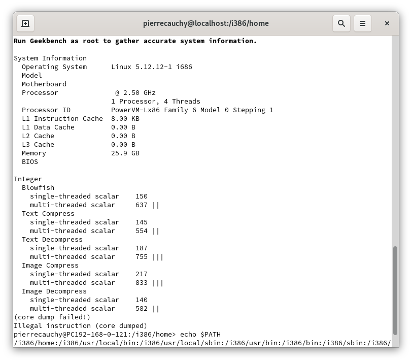 (so far only stuff in the /i386 directory can be run by PowerVM-LX86, this might be possible to overcome as the installer does offer the possibility to run stuff from the /home directories. So it might be down to an environment variable that does not get set as the installation does not complete; I need to look in the install script to find out if it's that and what it is.