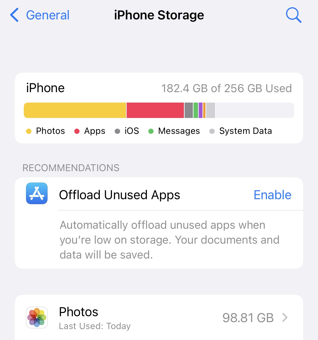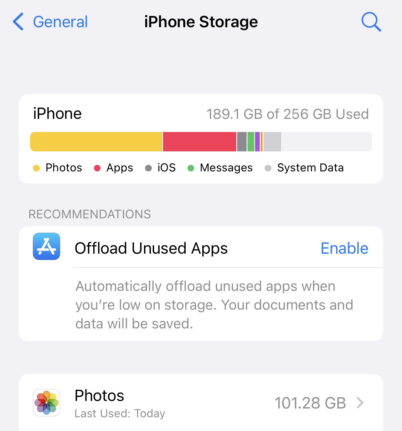 I’m enjoying my new iphone 13 Pro Max (256Gb), which has been a great upgrade from my previous XS Max. Got a bit of a weird issue with the space the optimised photos library is taking up…