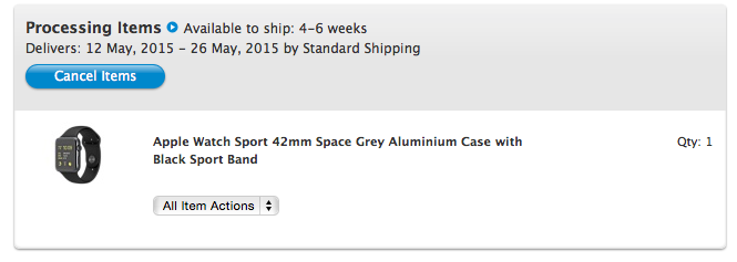 I'm a 8:04 for a 38SG. Nothing happening here. Given that stock has more than likely run out I would like Apple to send me another email saying when they expect more in stock and not a reminder about they have up to 8th May to get me the watch.