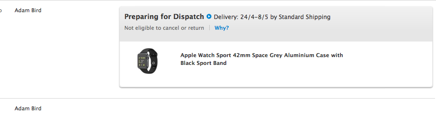 Ordered 10/04/2014 email came through at 8:03:19 sports grey 42mm