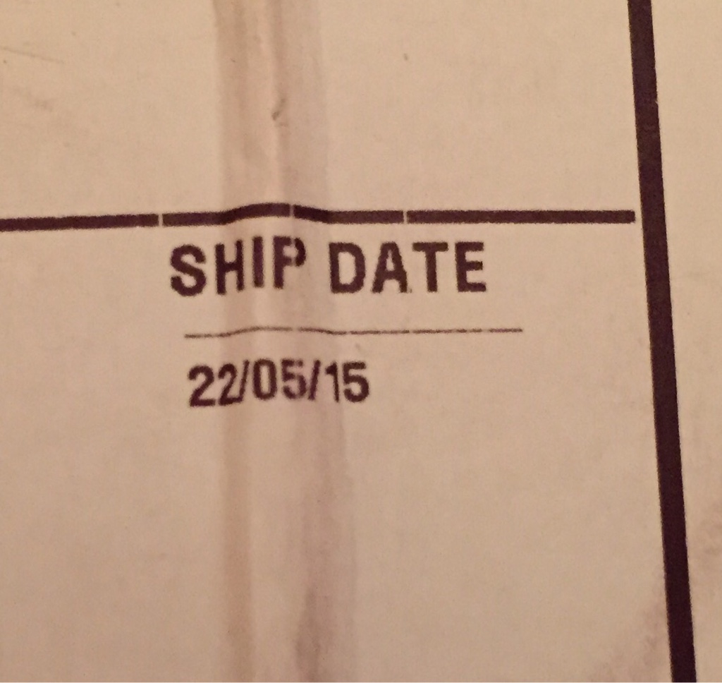 Just realised that on my packaging my ship date was obviously due to be 22-05-15!