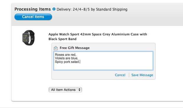 Ordered White 38mm sports email conf 15:49 (ordered at that time) with a despatch 'June' - charged to HSBC card!!!