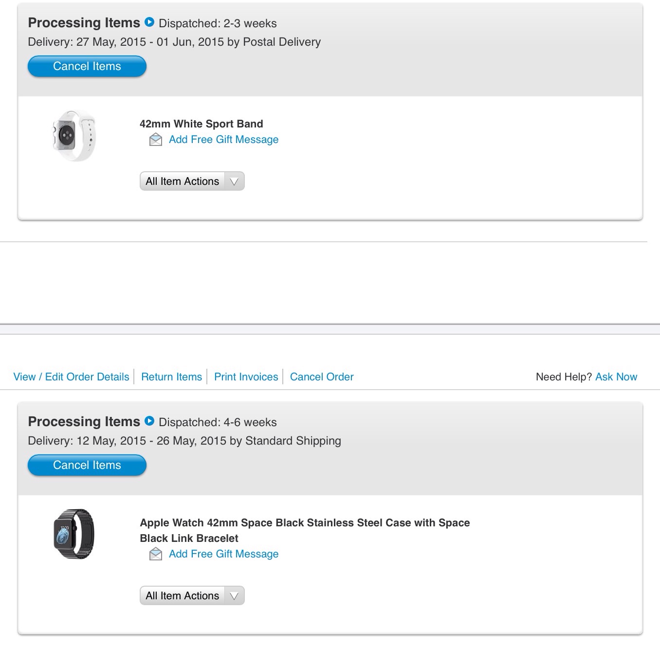 If the watch didn't launch until 24th April, then it's only been a few weeks so far. and I think you have ordered one of, if not THE, most popular models.